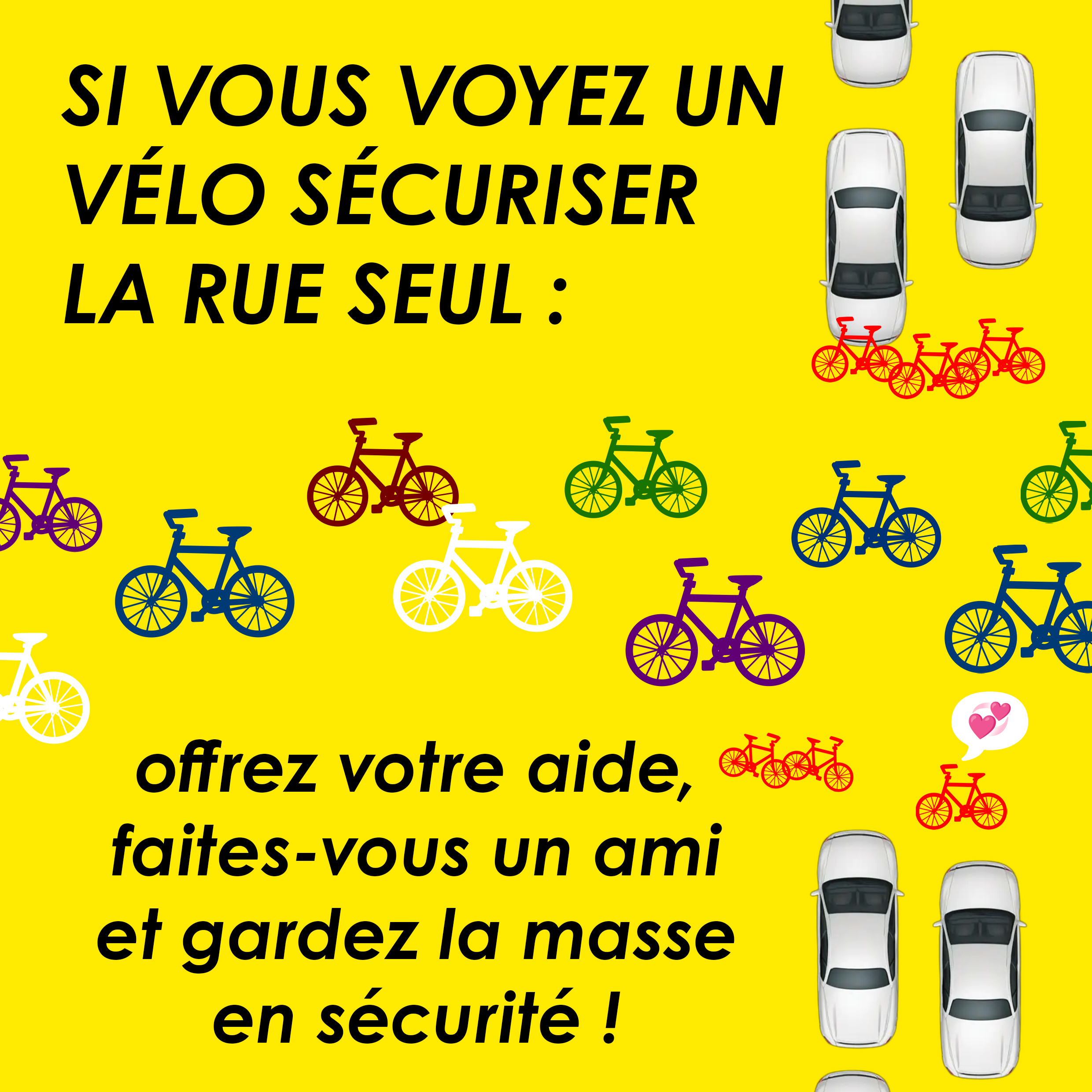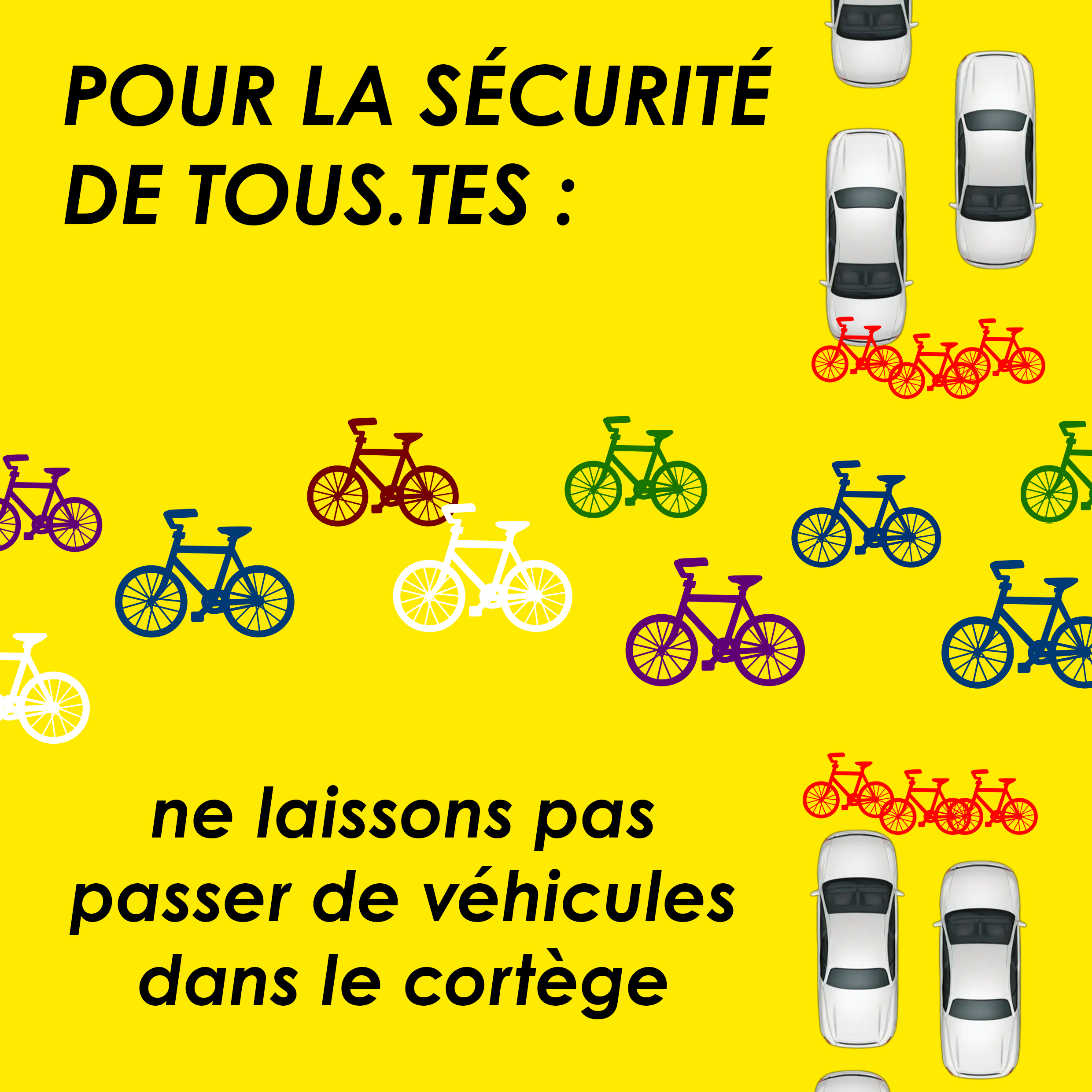 Pour la sécurité de tous.tes : roulons groupé et du bon côté de la route. Vous êtes seul responsable de votre propre sécurité.